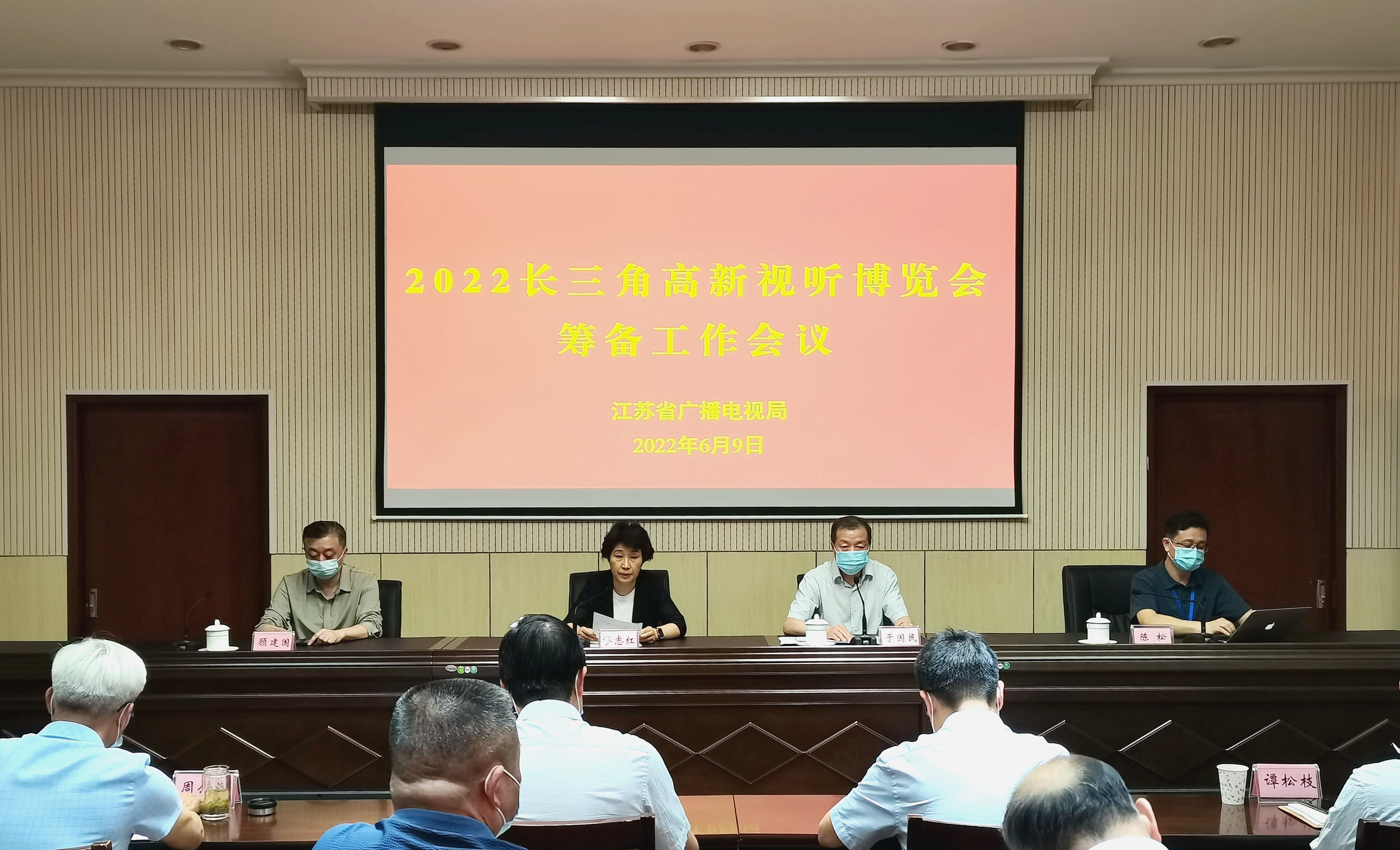 6月9日,省局召开2022长三角高新视听博览会筹备工作会议。局党组书记、局长缪志红出席会议并讲话,党组成员、副局长于国民主持会议。