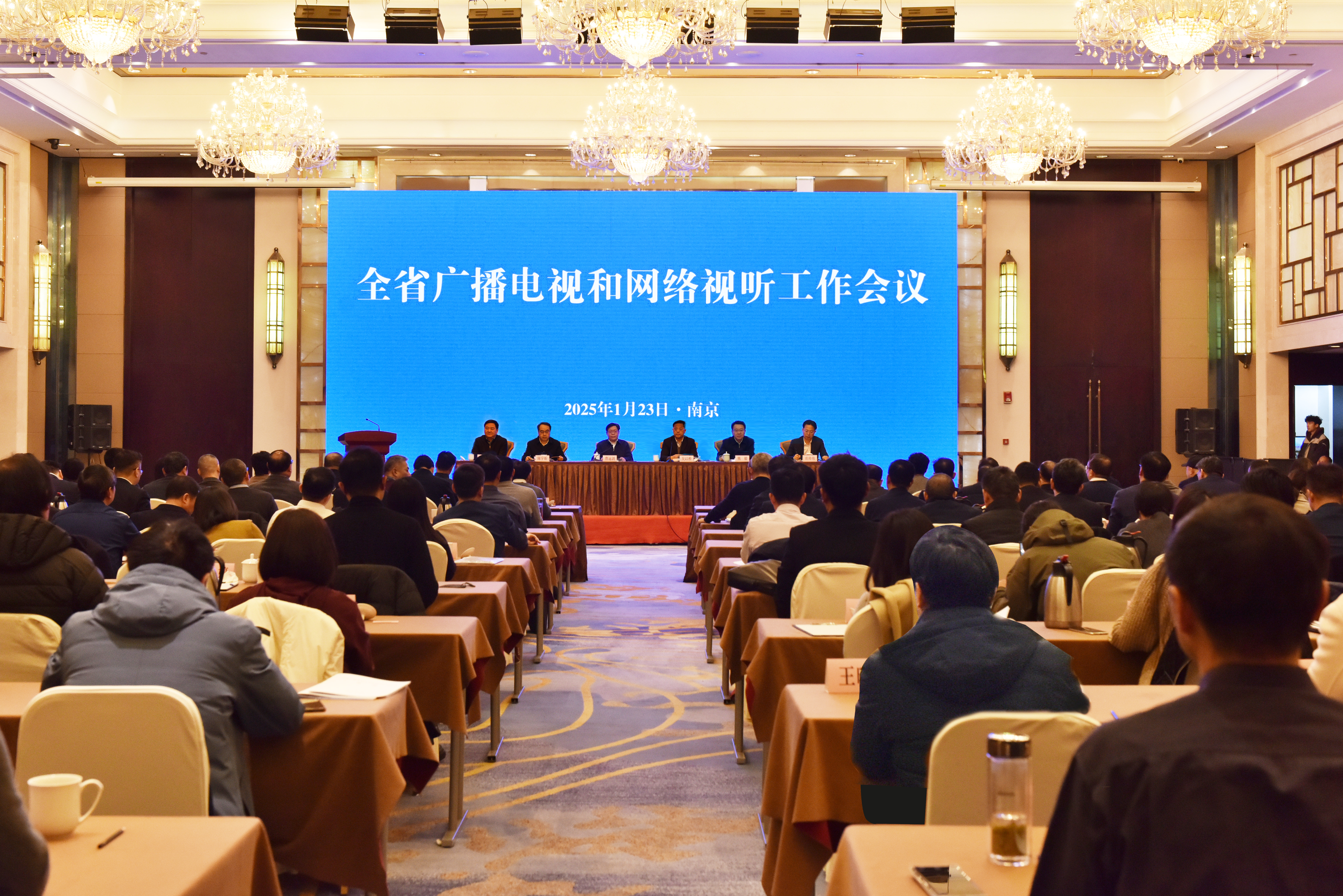 1月23日,全省广播电视和网络视听工作会议在南京召开。会议以习近平新时代中国特色社会主义思想为指导,深入学习贯彻习近平文化思想,全面贯彻党的二十届三中全会精神,认真落实全国宣传部长会议、广播电视工作会议和省委全会、省两会、全省宣传部长会议精神,总结过去一年工作,分析形势,安排部署2025年广播电视和网络视听工作任务。省广电局党组书记、局长曹远剑作工作报告,副局长吴以桥主持会议,副局长陈宇昕、熊毅和省广电总台台长葛莱、省广电网络公司董事长庄传伟出席会议。
